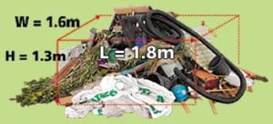 To estimate the size of bin you need, imagine your rubbish in a pile and then estimate it volume like this: